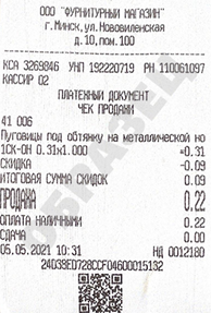 Образец чека: